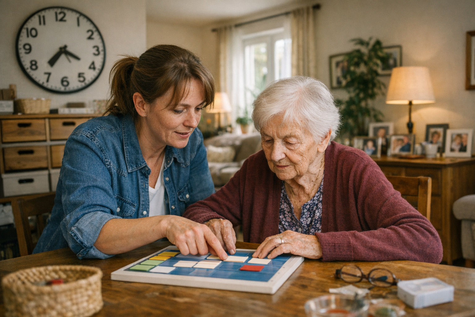 • Bieten Sie kognitive Stimulation durch angepasste Spiele, Rätsel oder Gespräche über vertraute Themen.