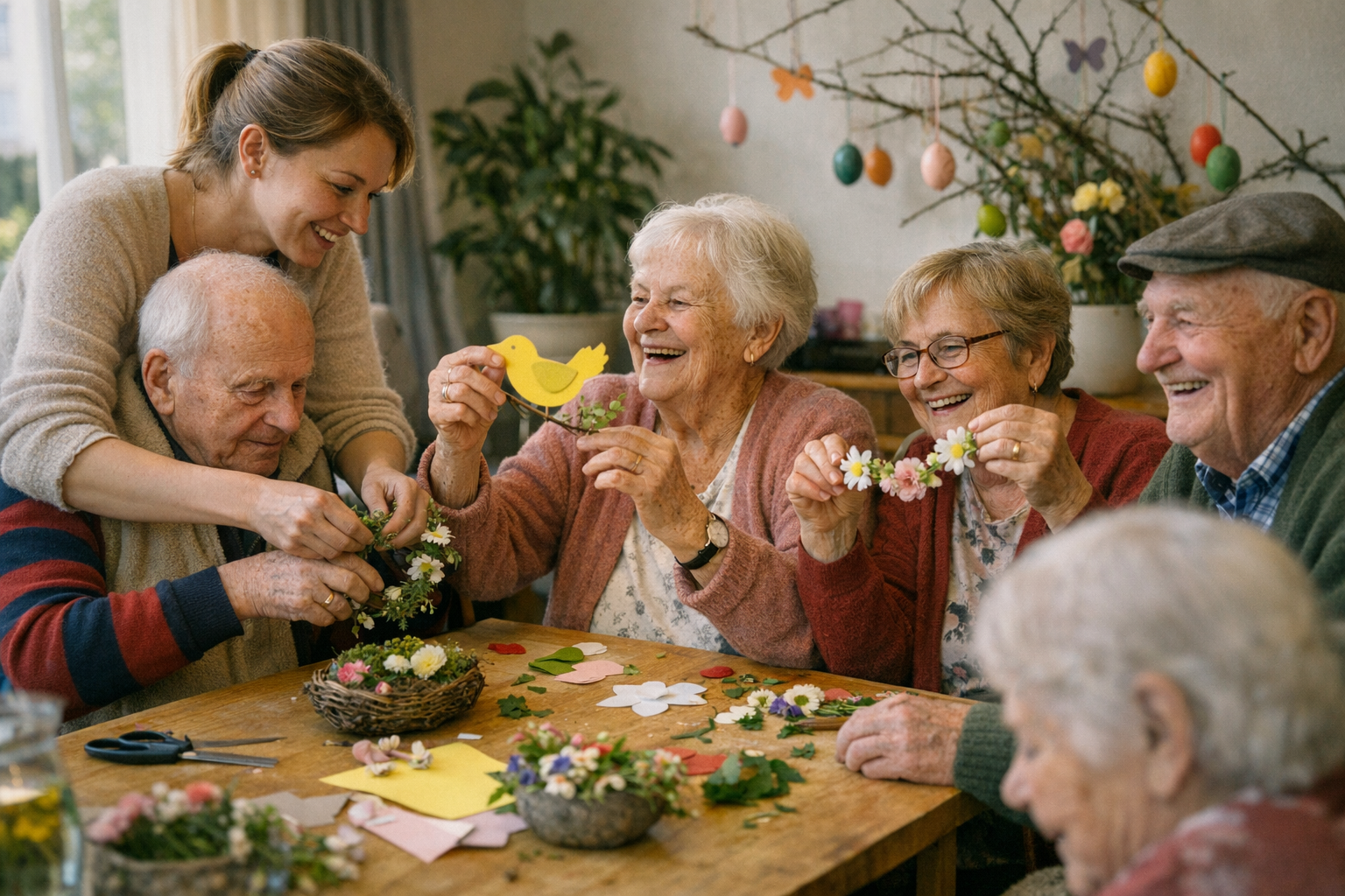 Frühlingsbasteln fördert die Feinmotorik, weckt Erinnerungen und schafft bedeutungsvolle Momente der Verbindung. Es bietet Erfolgserlebnisse, stärkt das Selbstvertrauen und kann die Lebensqualität sowie das Wohlbefinden spürbar verbessern. Zudem hilft es, die Sinne anzuregen und nonverbale Kommunikationswege zu öffnen.
