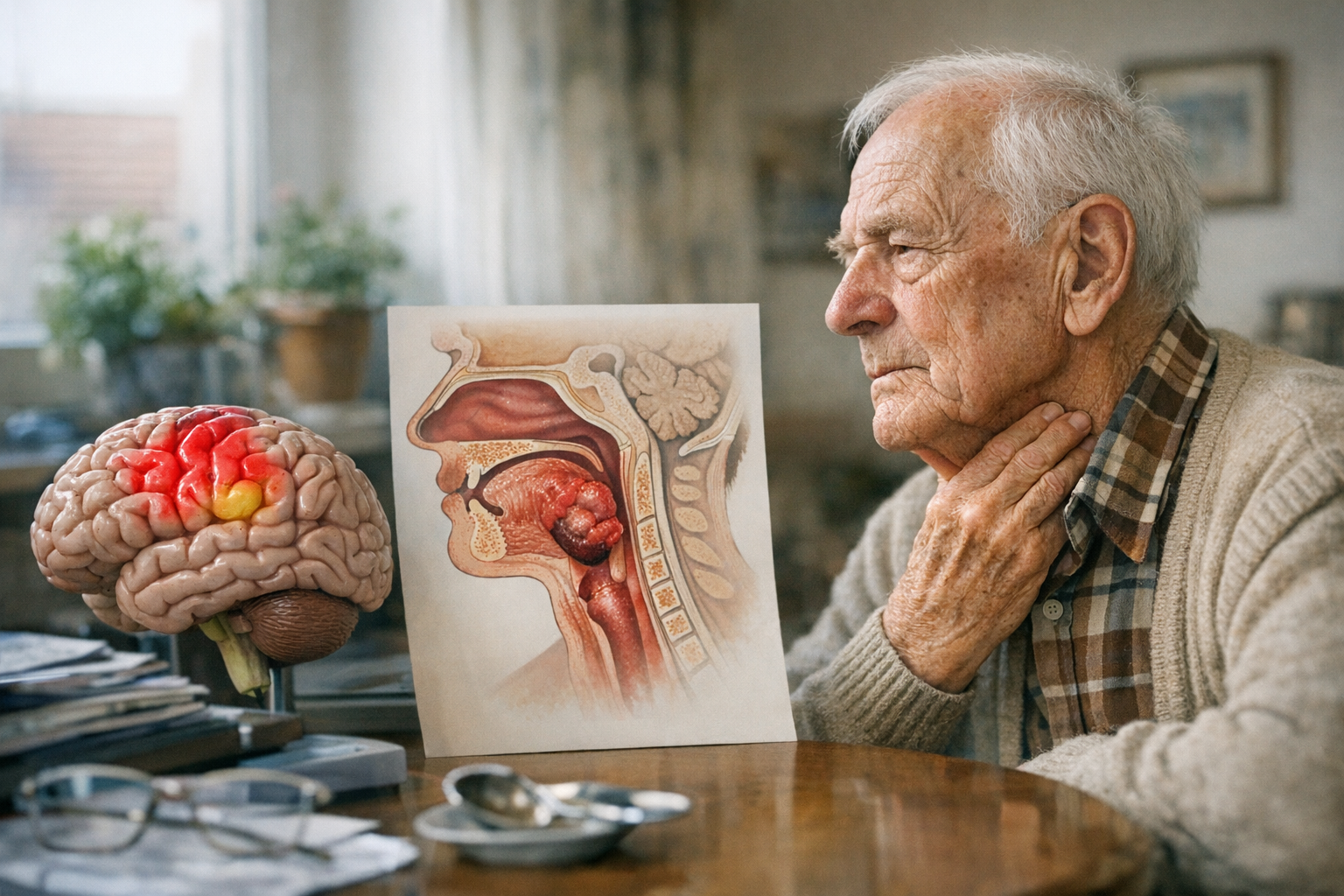 Schluckstörungen können durch neurologische Erkrankungen wie Schlaganfall oder Parkinson, anatomische Veränderungen im Mund- und Rachenraum sowie altersbedingte Faktoren verursacht werden.